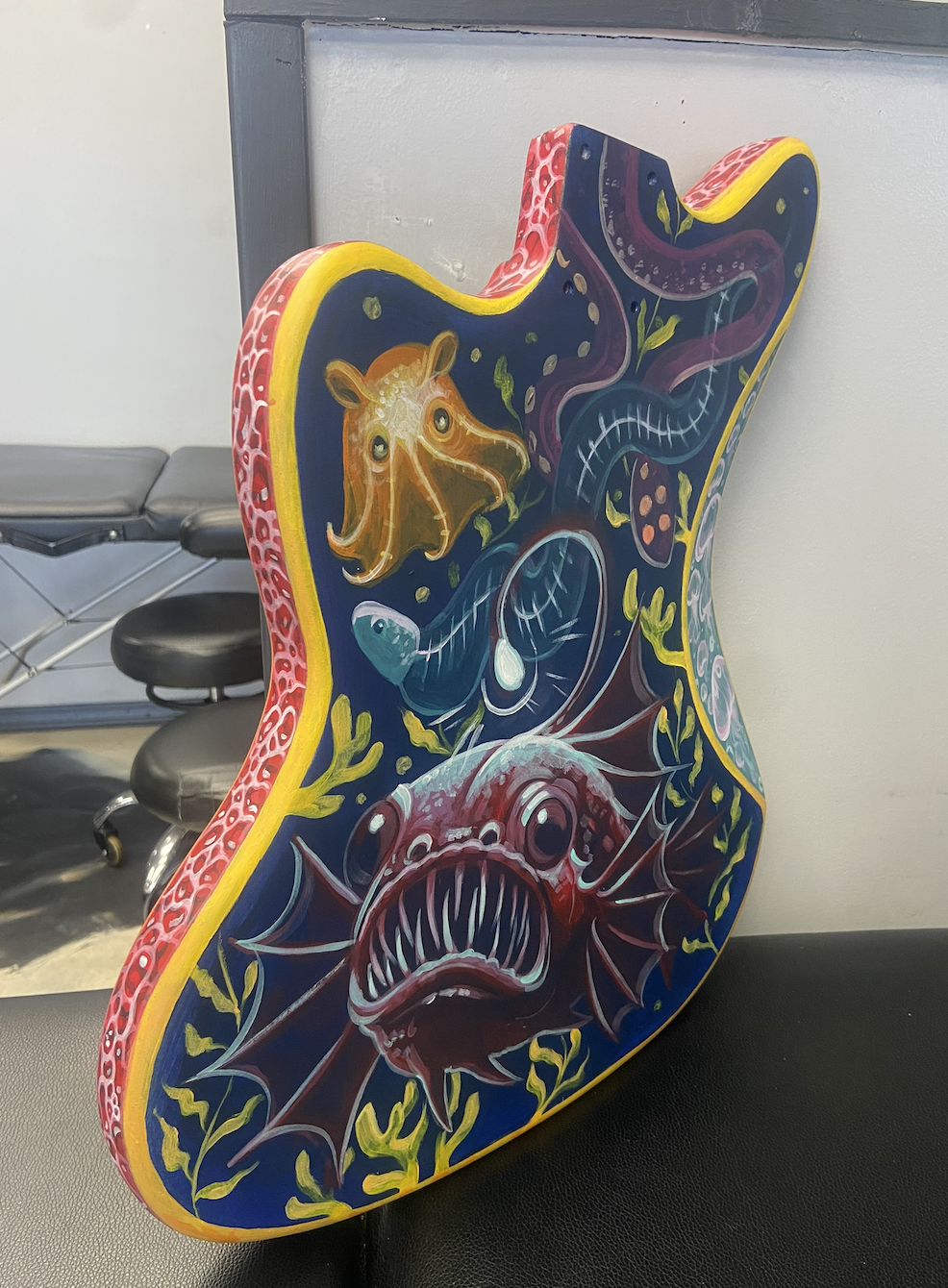 “I have always had an affinity for the deep sea and the mysteries that lurk beneath sea level. This guitar was created for the Fullerton Museum Center Auction.”